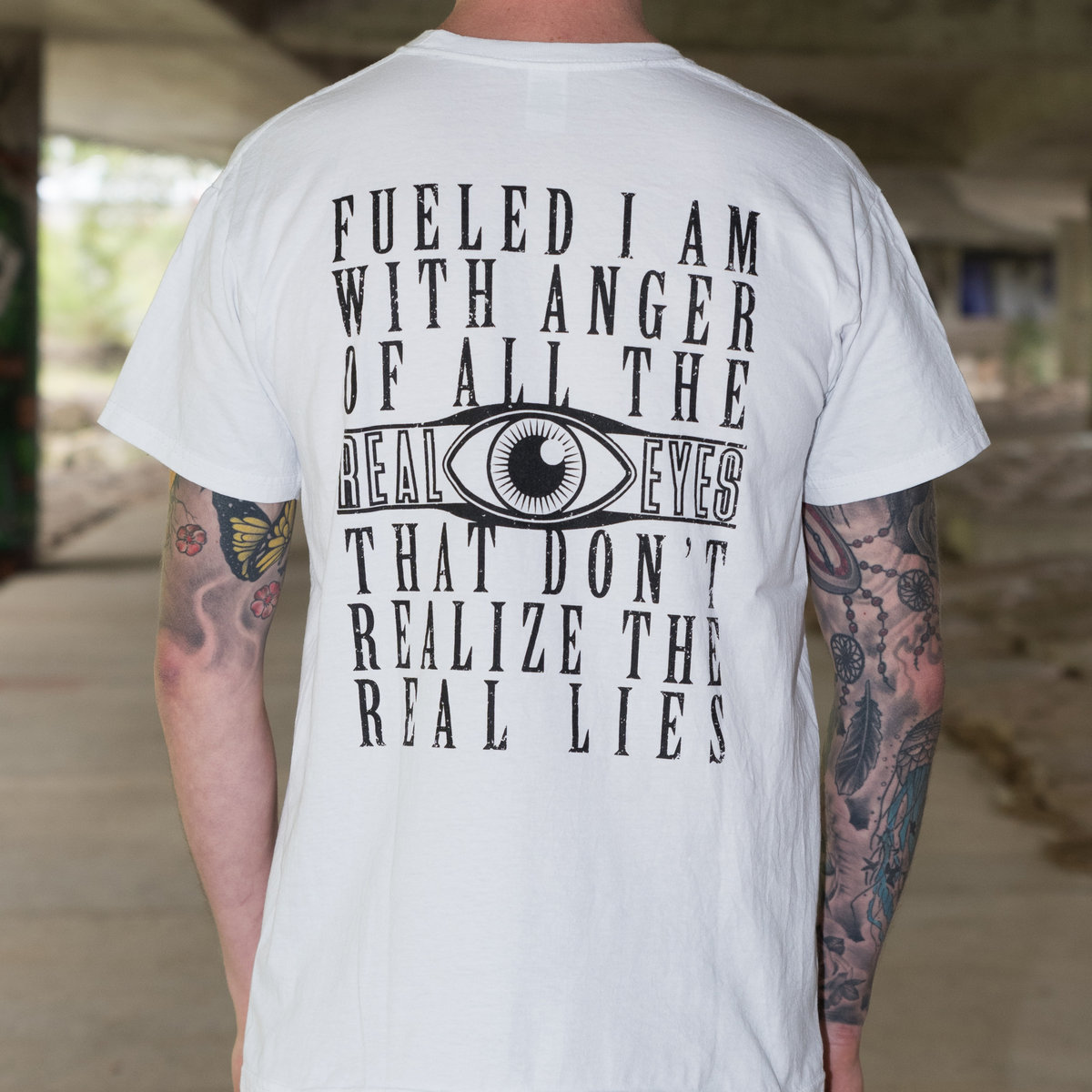 The Print on our limited lyric shirt "Real Eyes" is an outtake of our song "Blurred Visions And Silent Echoes". It is available in sizes S - XL. The shirts are Super Premium Fruit of the Loom quality. Please note that these are European sizes.